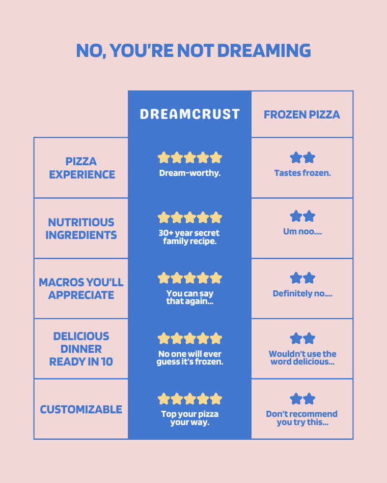 "I really like pizza but I rarely get to eat it because it doesn’t fit in my macros, but that’s not the case with Dreamcrust!"