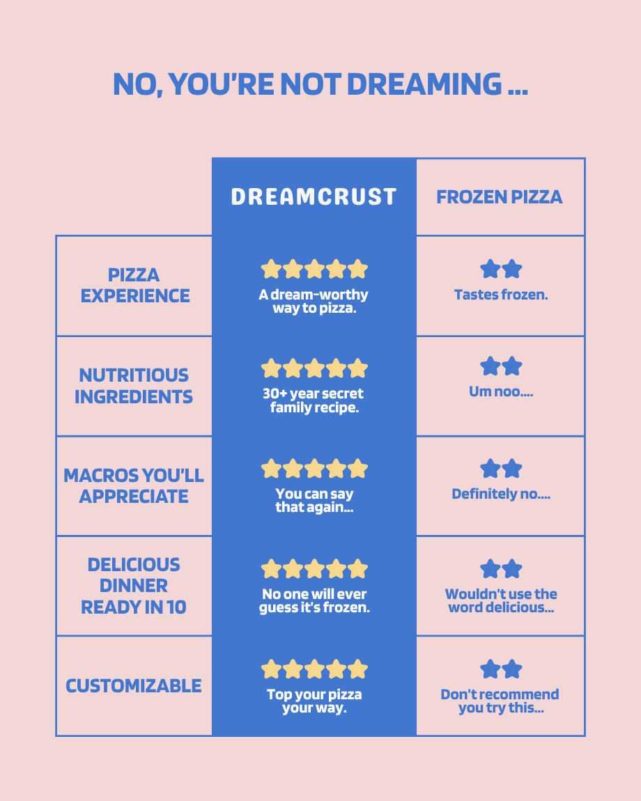 Explore the different worlds of Dreamcrust with an assortment of our Mozzarella Dreamz, Veggie Valley, and Pepperoni Paradise (Plant-based-Pepperoni)