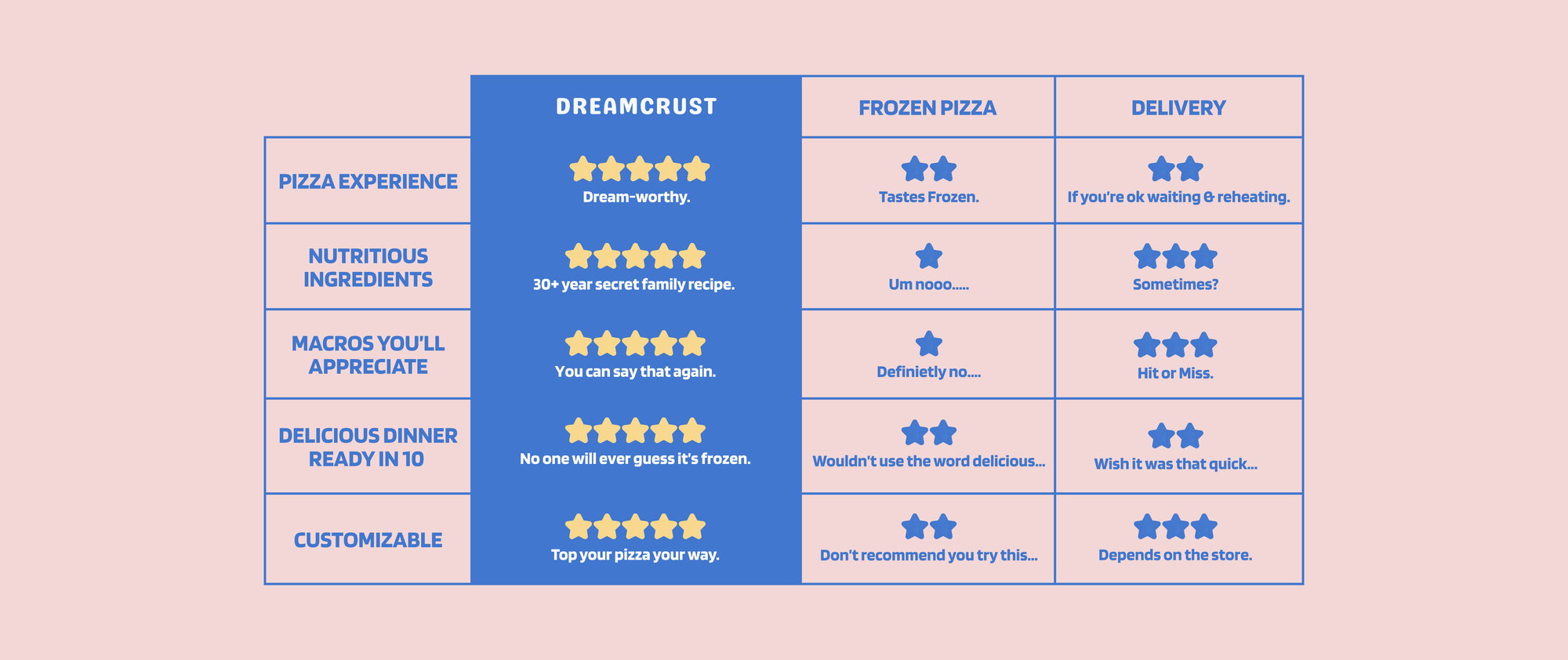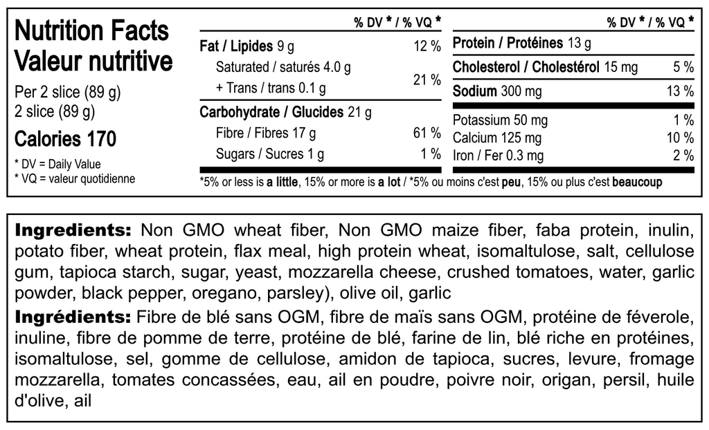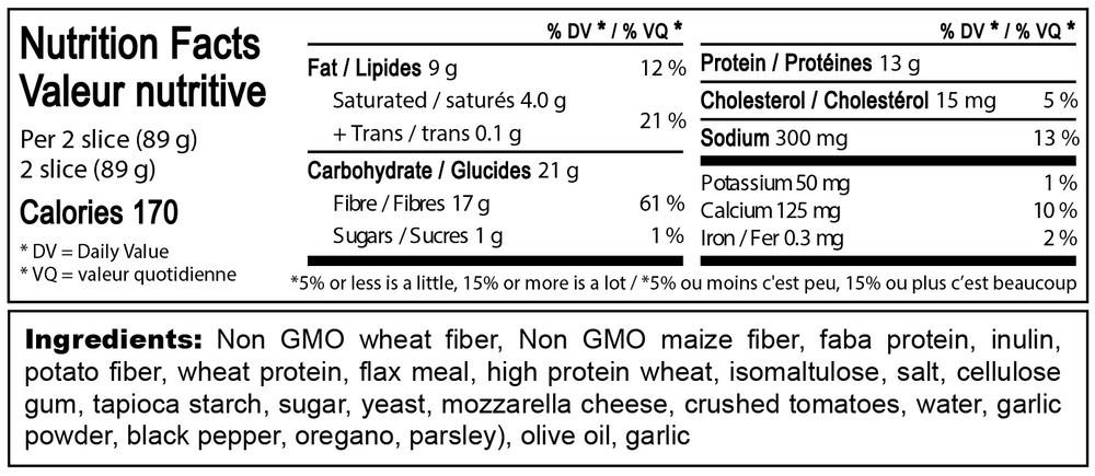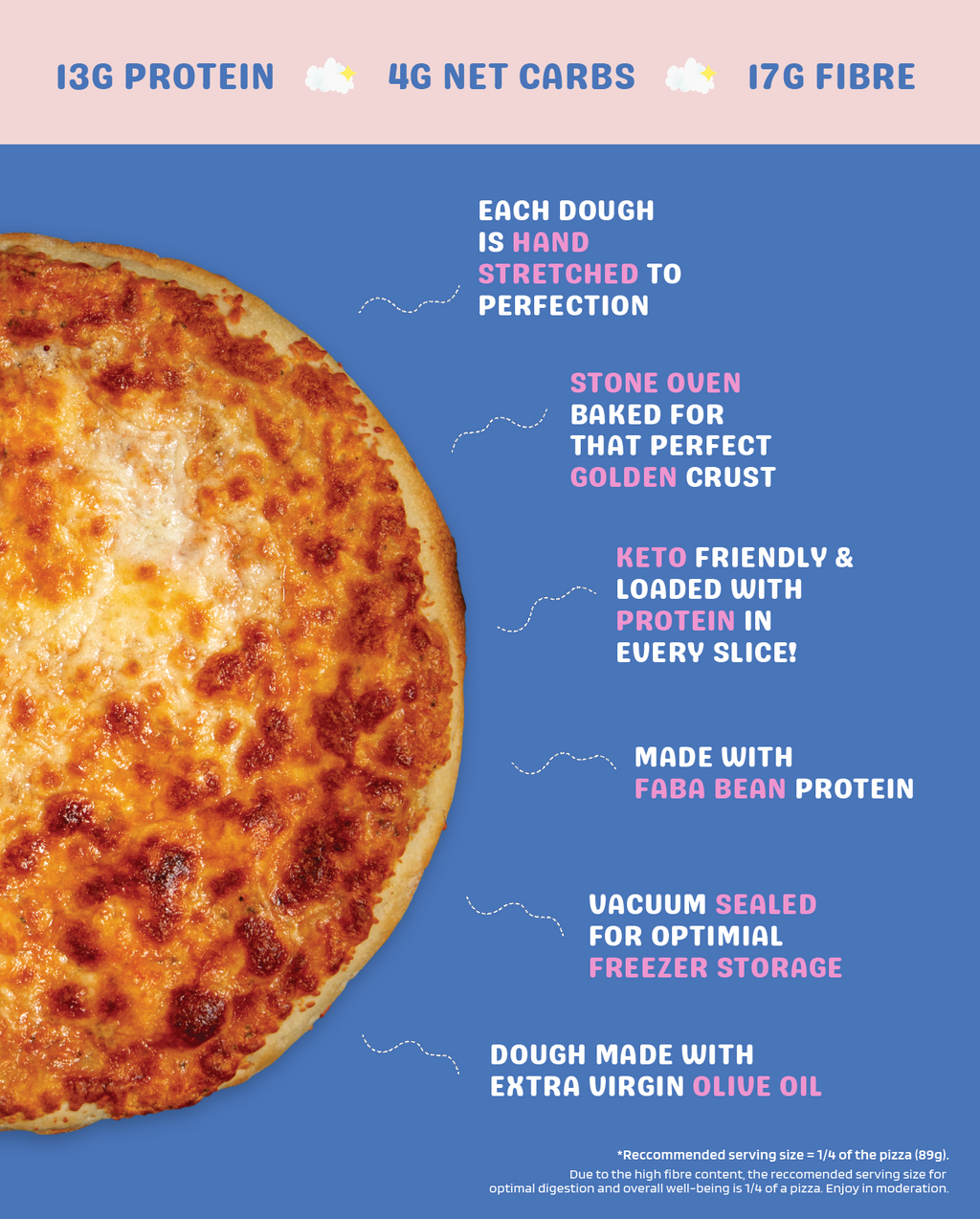 A heaven-like blend of mozzarella cheese layered on top of our secret, god-made tomato sauce recipe. A 10” inch pizza with 52 grams of protein and 16 grams of net carbs.