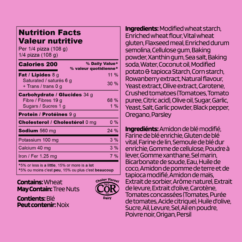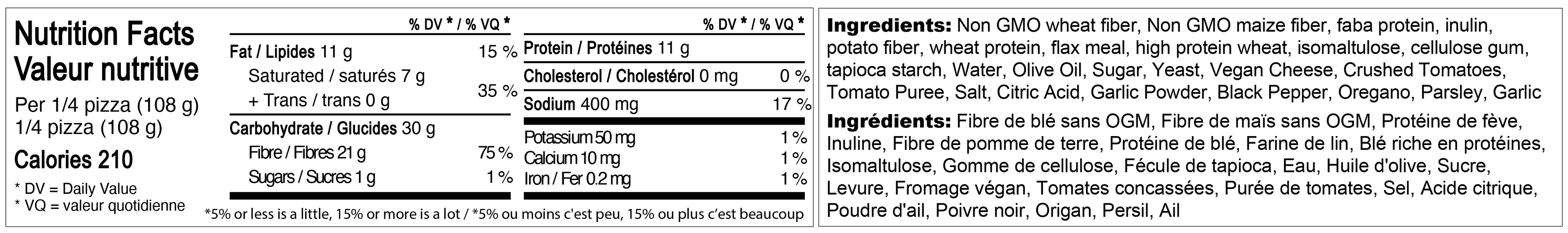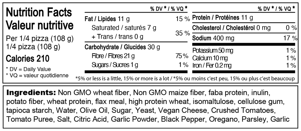 A heaven-like blend of plant based cheese layered on top of our secret, god-made tomato sauce recipe. An 11 inch pizza with 68 grams of protein and 20 grams of net carbs.